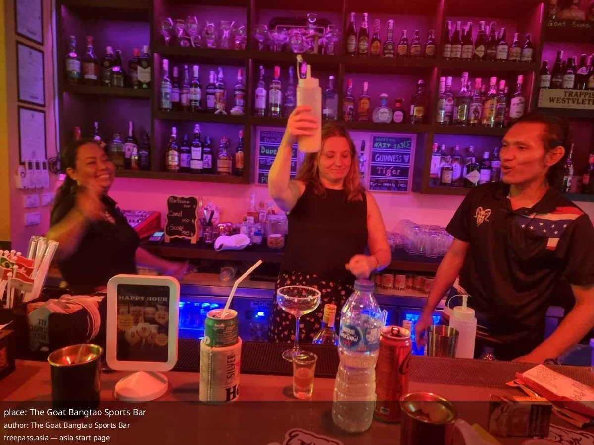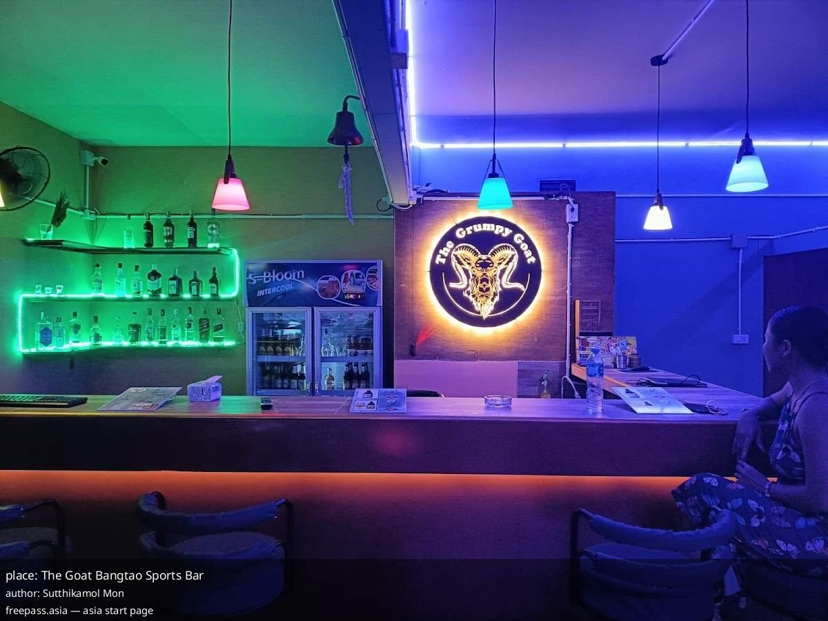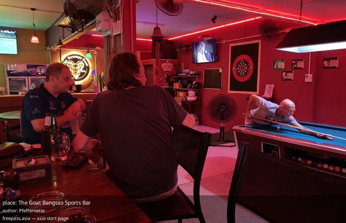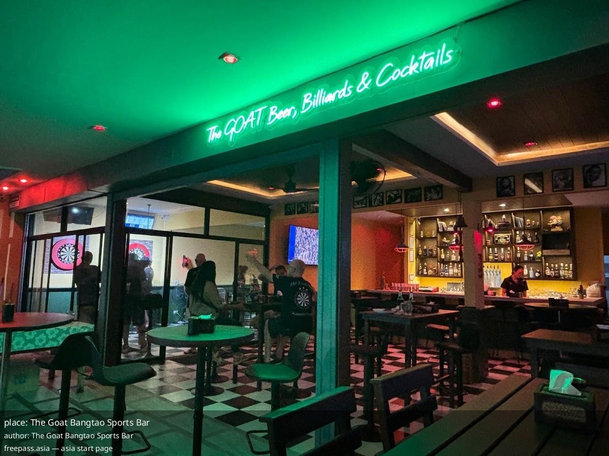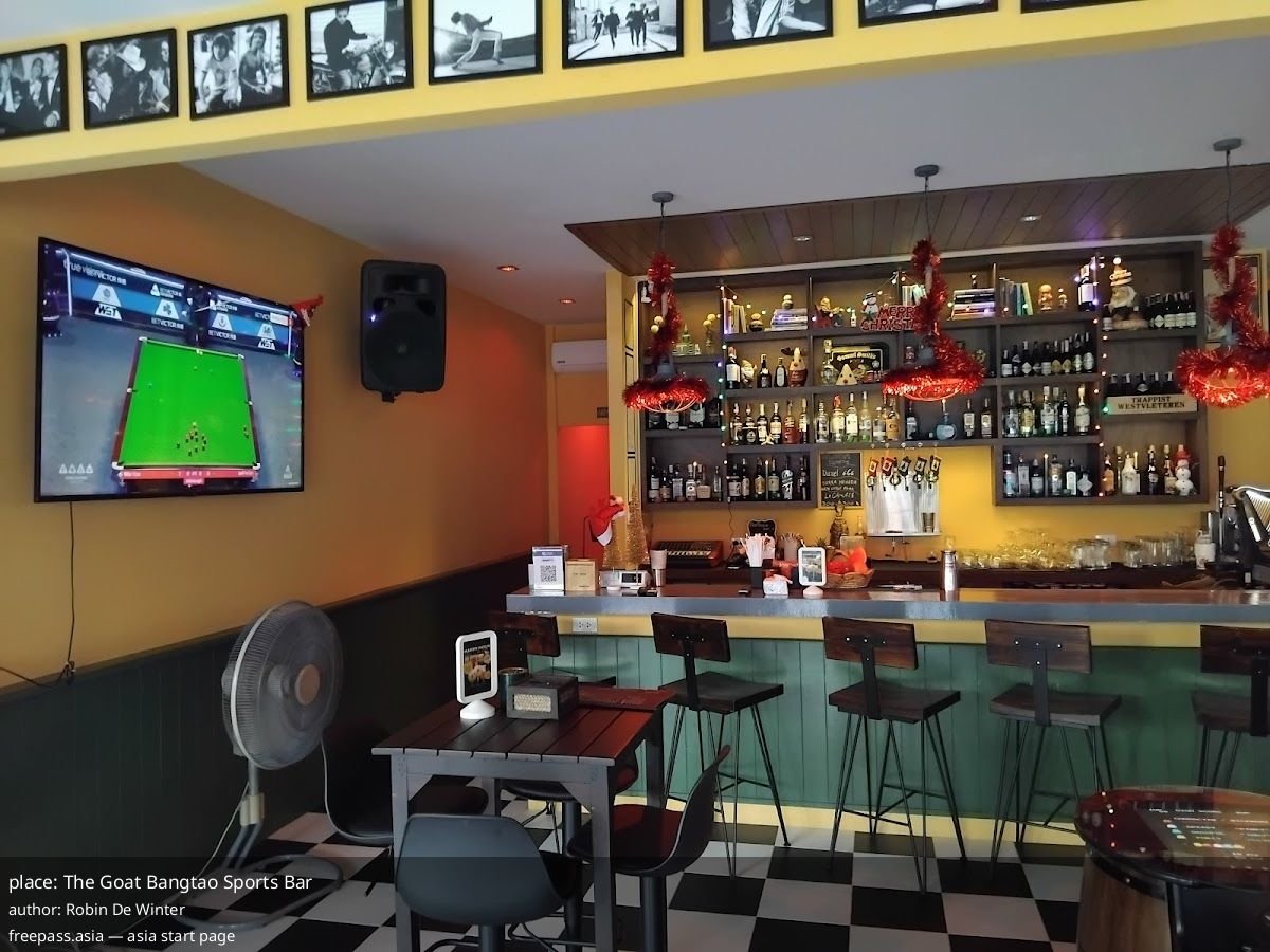 The Goat Bangtao Sports Bar Bangkok — local sports hangout where friendly staff queue up your match, plus pool, darts and a huge drinks selection