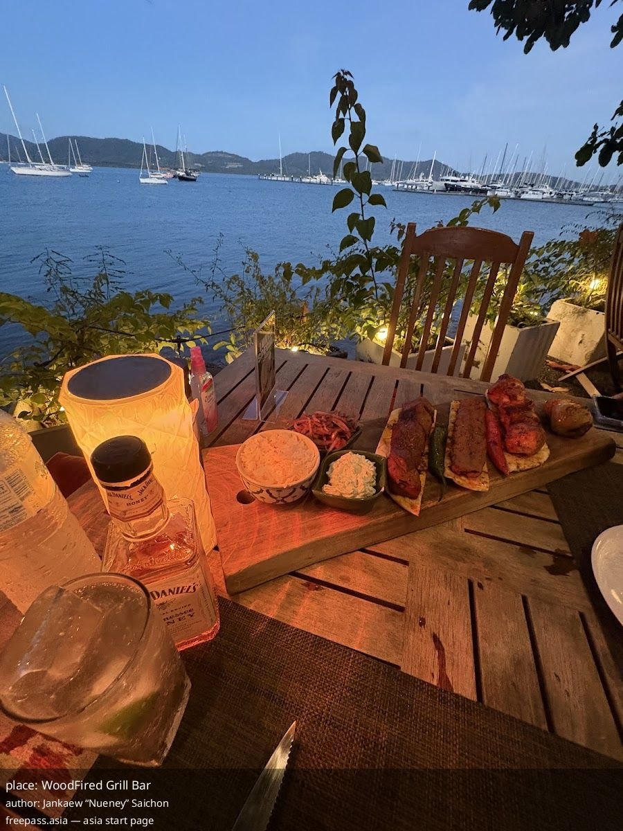 Rated 4.7 out of 5 from 258 reviews, WoodFired Grill Bar sits at the tip of north Phuket beside Phuket Yacht Haven Marina, offering direct sea vistas and a quieter, off-the-main-drag feel that reviewers call a hidden spot. That waterfront positioning is the single strongest recurring detail in guest accounts, and it shapes the rest of the experience.