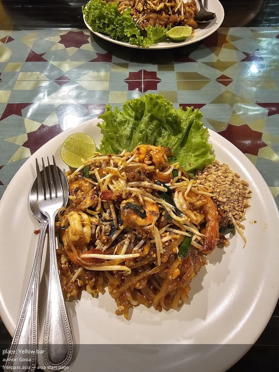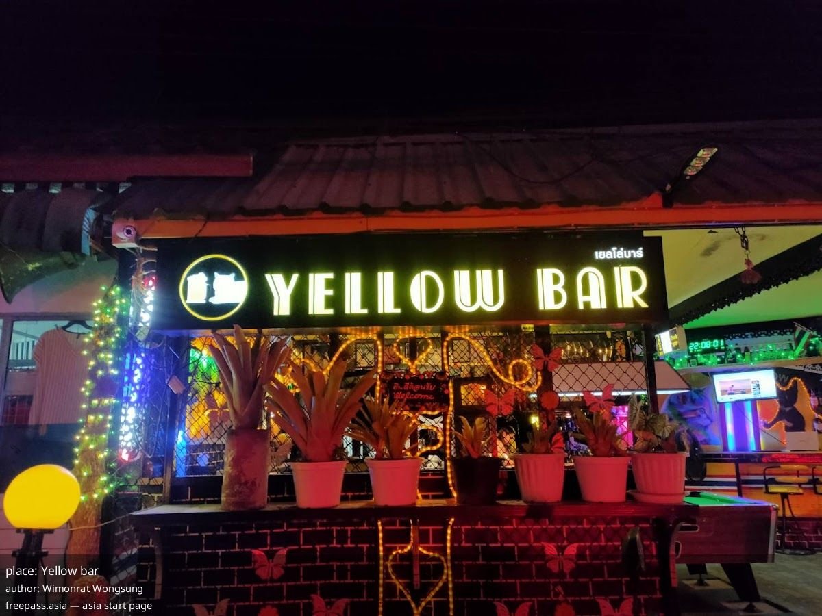 Yellow bar Bang Tao Beach — family-run pool bar where owners cook delicious Pad Thai and set a relaxed, personal music-filled evening vibe
