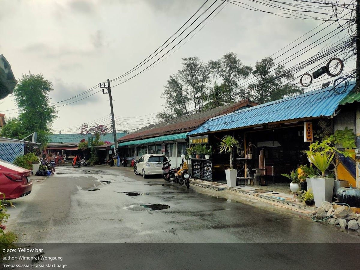Yellow bar, a small venue just off Bang Tao beach, earns a perfect 5/5 from four reviewers; the entries give a tight, consistent picture of a low-key pool bar with home-cooked food and a friendly, family-style vibe.