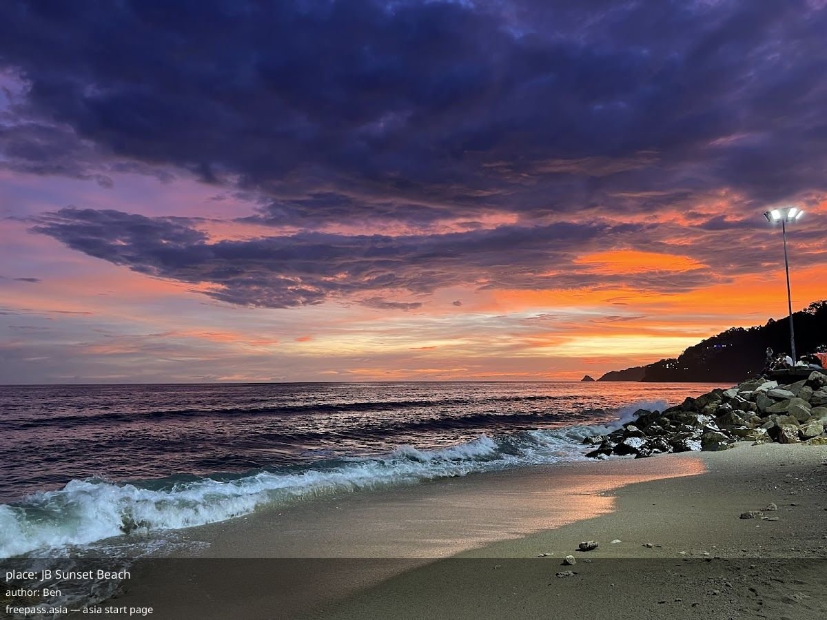 JB Sunset Beach Phuket quietly outshines Patong for sunset lovers – hidden halal stall, cleaner sand, small cove with rocks and waves