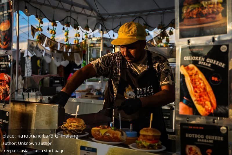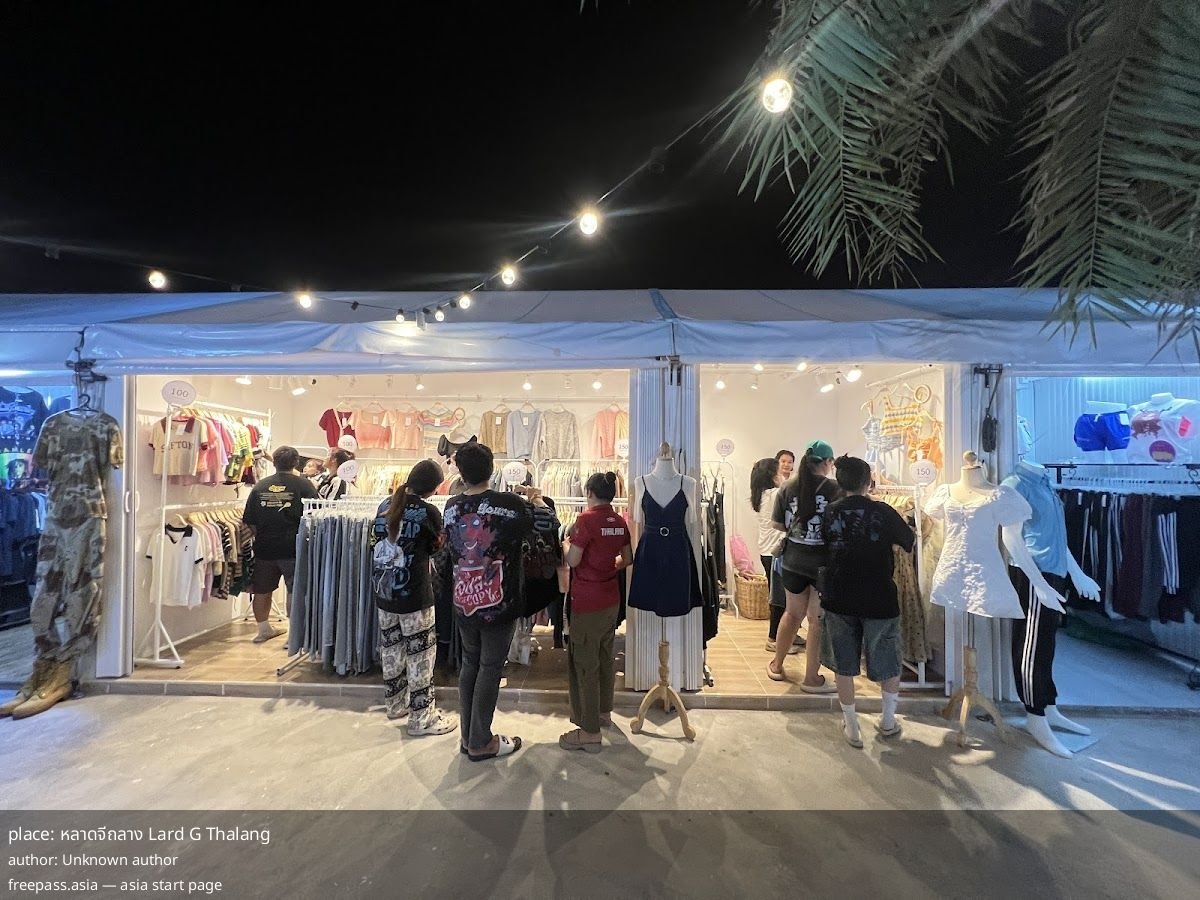 ลาดจีถลาง Lard G Thalang is a local evening market with a 4.9/5 rating from 60 reviewers, operating most evenings (Monday–Wednesday, Friday–Sunday, 16:00–22:00; closed Thursday). Reviews consistently point to a compact, evening-focused destination where music, food and fashion are the main draws.