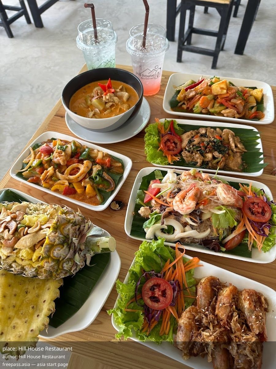 Hill House operates from 11:00 AM to 8:30 PM on Mondays through Thursdays and on weekends, but it is closed on Fridays. There is a free parking lot on site for those driving in, which removes the stress of hunting for a spot after a long day. The restaurant sits among notable nearby accommodations and services including V Villas Phuket, Bandara Pool Villas, and a handful of guesthouses and lounges, which makes it an easy stop for travelers based locally.