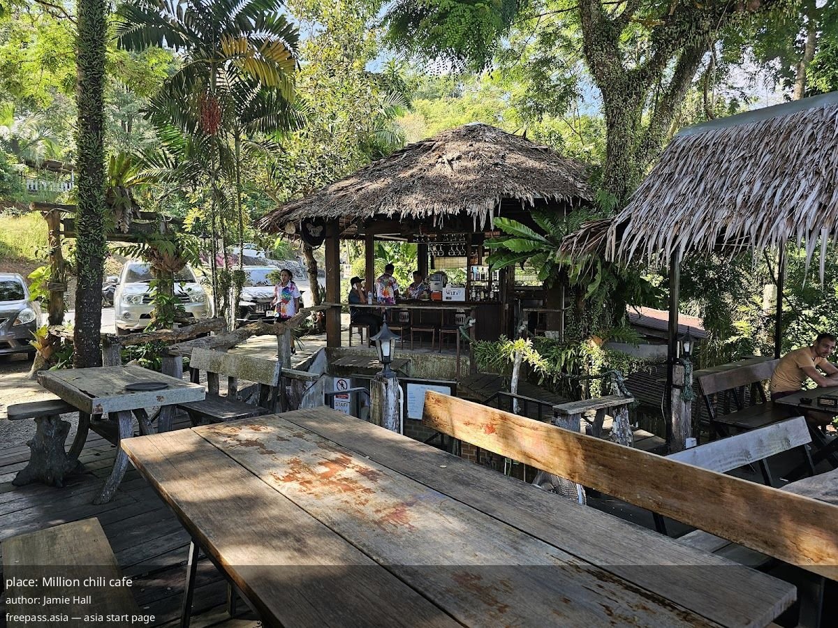 Million chili cafe gives families the rare combo of excellent, broadly appealing Thai dishes, an attentive team that helps parents unwind, and a real view — at the cost of exposed outdoor seating and a menu heavy on seafood. Bring sun protection, plan around your Big Buddha visit, and order garlic bread as a kid-tested win while you dig into stronger-flavored dishes.