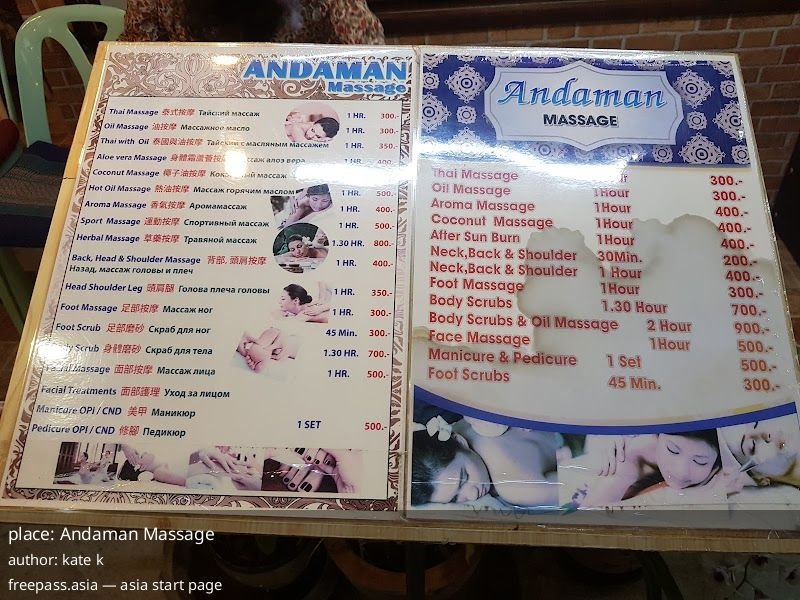 Andaman Massage is a solid option in Kamala, Phuket for aroma, oil and foot therapies with long daily hours and a history of friendly staff and repeat local clientele. Exercise caution with Thai massage and be prepared to state and enforce pressure limits. Report any misconduct to management and consider trying a short session first to confirm therapist style before committing to a longer treatment.