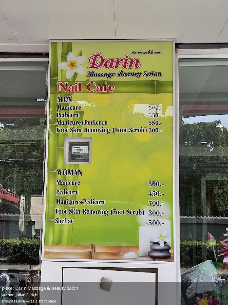 - Reported treatments include Thai massage, foot massage, oil massage, neck/shoulder/back work, full body massage, manicure and pedicure.
