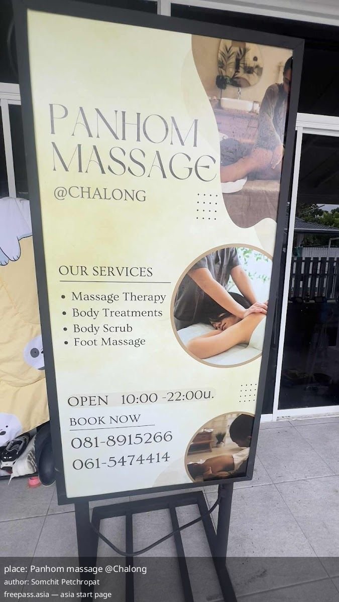 Panhom massage @Chalong holds a 5 out of 5 aggregate from 14 reviewers and operates every day from 9:00 AM to 10:00 PM.